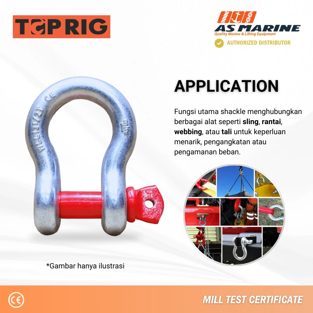 Toprig Bow Shackle G209 55 Ton menawarkan kekuatan tinggi, kepraktisan, dan ketahanan terhadap karat.