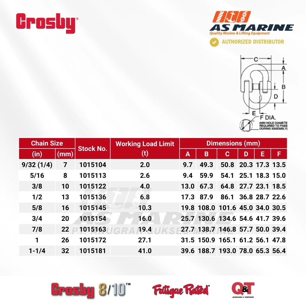- Serbaguna: Dengan ukuran 1/2 inci (13 mm), connecting link ini ideal untuk rantai Grade 80 dan Grade 100 dengan ukuran yang sama, cocok untuk berbagai aplikasi angkat dan penarik.