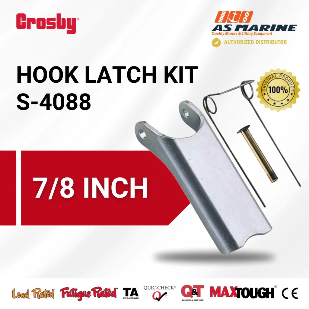 Kit Latch S-4088 ukuran 7/8 Inch ini secara spesifik dirancang untuk digunakan pada sling hook Crosby Grade 8 model A-327 dan A-339. Dibuat dari Baja Paduan (Alloy Steel) yang tahan lama, Latch Kit ini menjamin kinerja yang kuat dan umur pakai yang panjang.