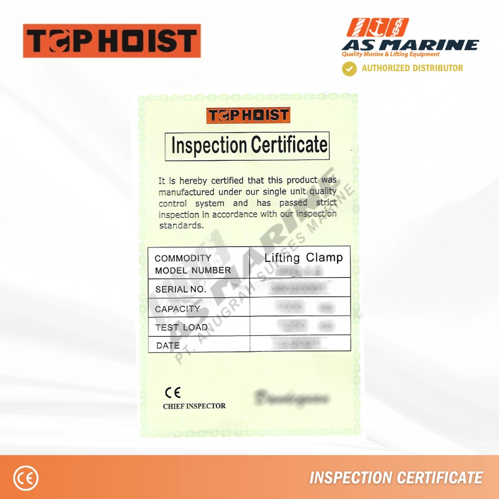 Tophoist Horizontal Lifting Clamp dibuat dari baja paduan berkekuatan tinggi dengan desain kompak dan presisi, memastikan genggaman kuat tanpa merusak permukaan plat. Setiap unit dilengkapi dengan mekanisme pengunci otomatis yang meningkatkan keamanan selama proses pengangkatan.