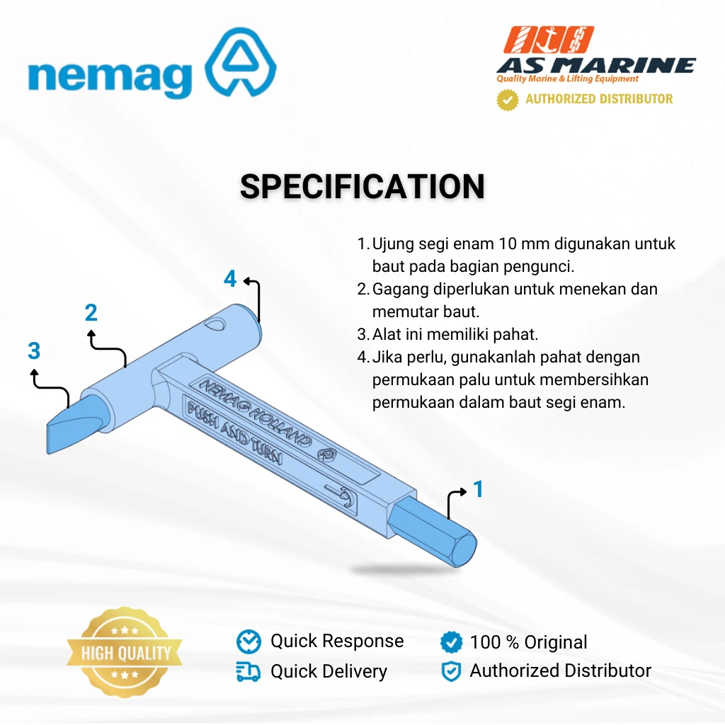 - Fungsi: Alat khusus untuk membuka dan mengunci locking piece pada Nemag Quick Release Link.