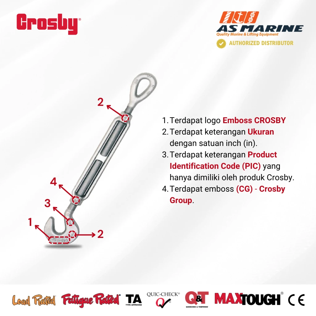 Cari solusi untuk mengatur panjang, ketegangan, atau tegangan pada tali, kawat, atau rantai? Turnbuckle Hook & Eye HG225 dari Crosby adalah pilihan yang tepat. Sebagai produk dari Crosby, nama yang identik dengan kualitas dan keandalan dalam industri perangkat keras angkat, turnbuckle ini dirancang untuk memberikan kinerja yang optimal dan aman dalam berbagai aplikasi.