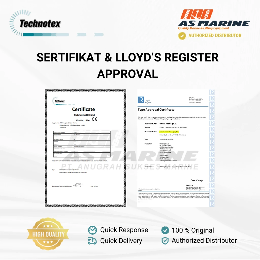 Webbing Sling Technotex Holland adalah tali angkat sintetis berjenis datar (flat webbing sling) berkualitas premium, dirancang khusus untuk mengangkat beban yang rentan terhadap kerusakan, membutuhkan kontak permukaan yang lebar, dan presisi. Diproduksi oleh Technotex dari Holland, produk ini menjamin kualitas Eropa yang telah diakui secara internasional.
