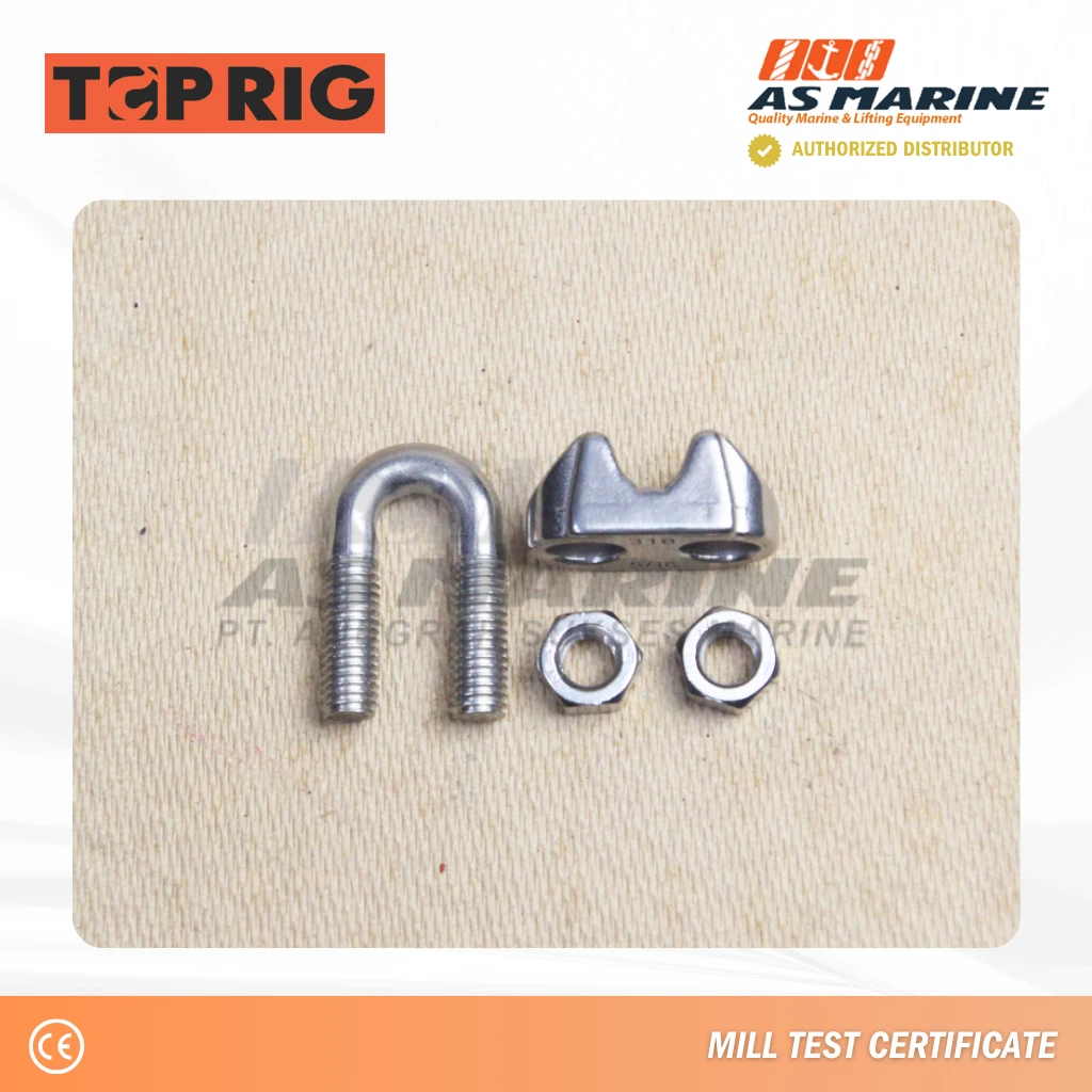 Jual Wire Clip Stainless Steel 316 Toprig ukuran 8 mm – aksesoris penting dalam sistem rigging dan pengikatan kawat baja (wire rope) yang berfungsi untuk mengencangkan, menyambung, atau membentuk mata sling (eye loop) secara kuat dan aman.